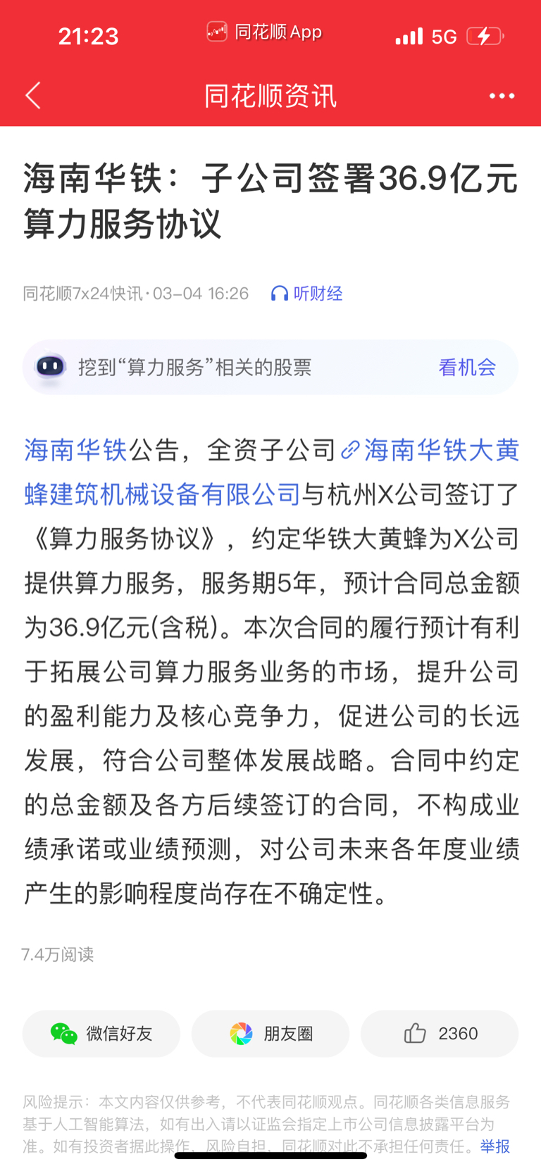 而作为有国产、进口算力双布局的弘信电子,会缺订单吗?还是那句话,相信属于弘信的订单,只会迟到,不会不到。$海南华铁(SH603300)$ $云赛智联(SH600602)$