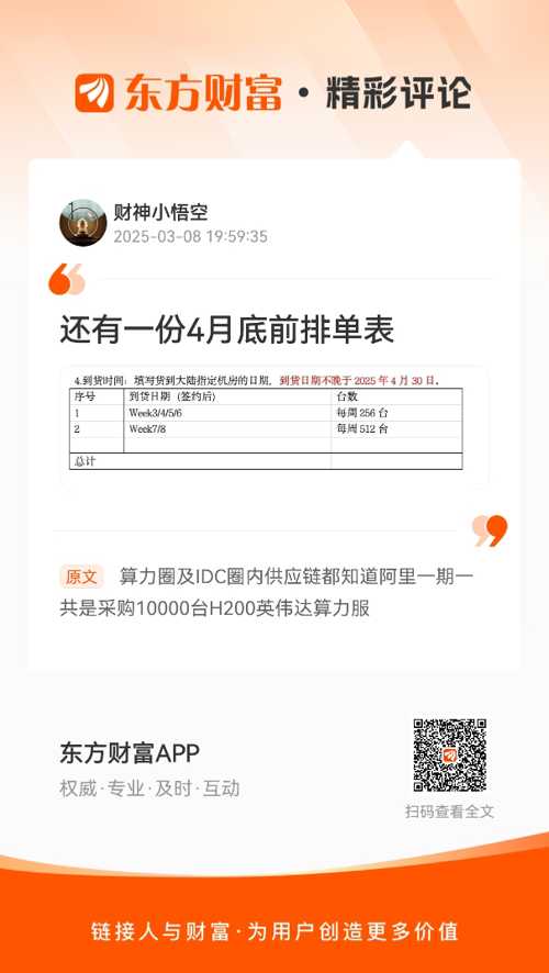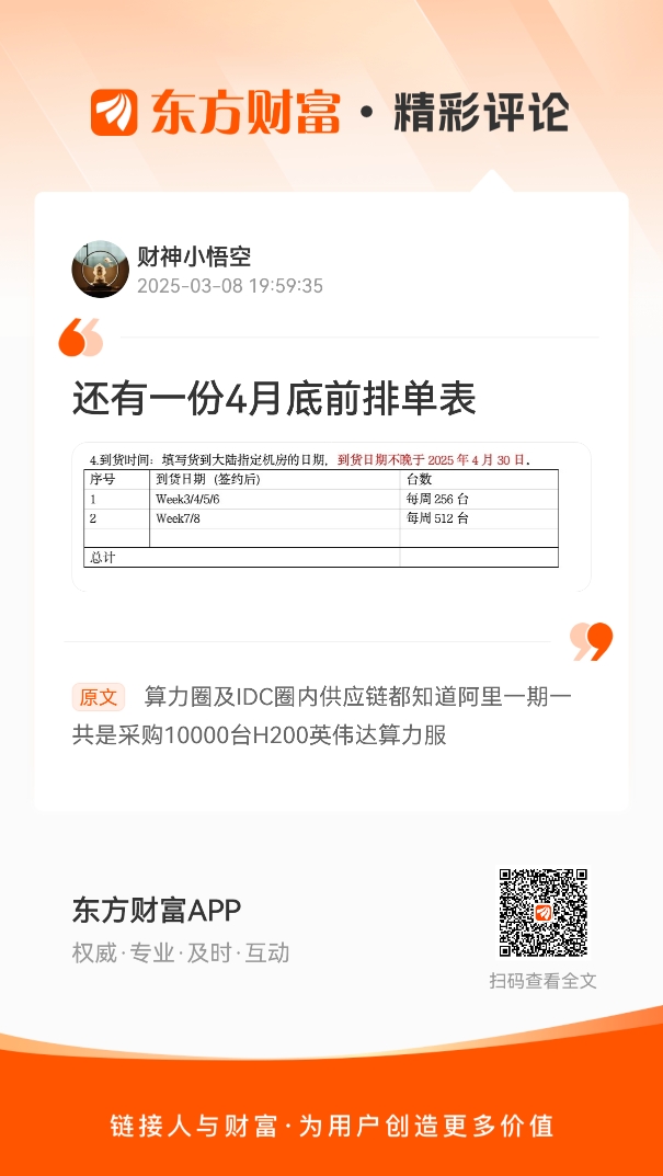 我在《算力圈及IDC圈内供应链都知道阿里一期一共是采购10000台H200英伟达算力服》的评论获得了大家的关注。