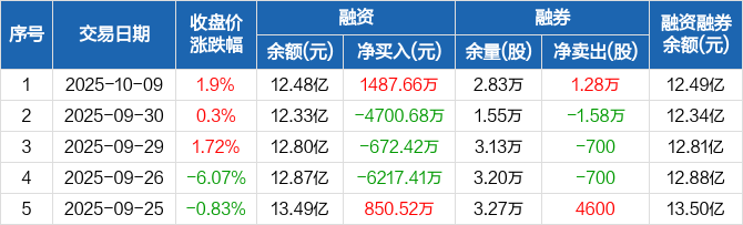 弘信电子:融资净买入1487.66万元,融资余额12.48亿元(10-09)