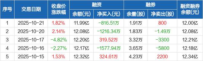 弘信电子:融资净偿还816.51万元,融资余额11.99亿元(10-21)