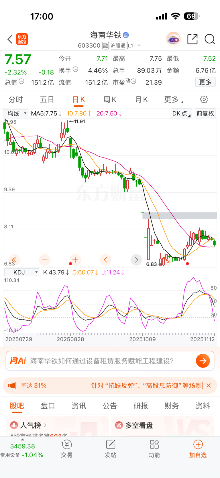 离了大谱了,还不如买海南华铁