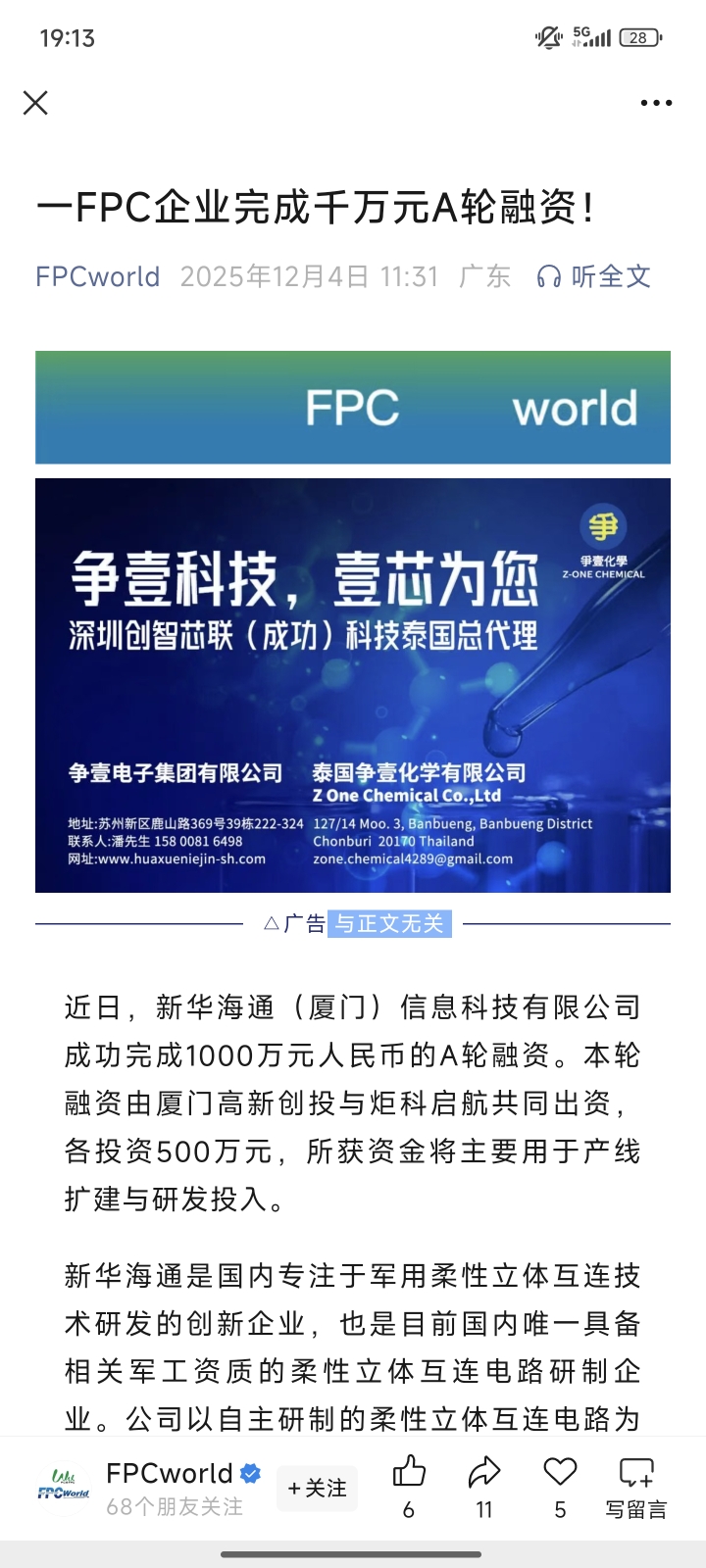 $弘信电子(SZ300657)$ 军工,弘信子公司。