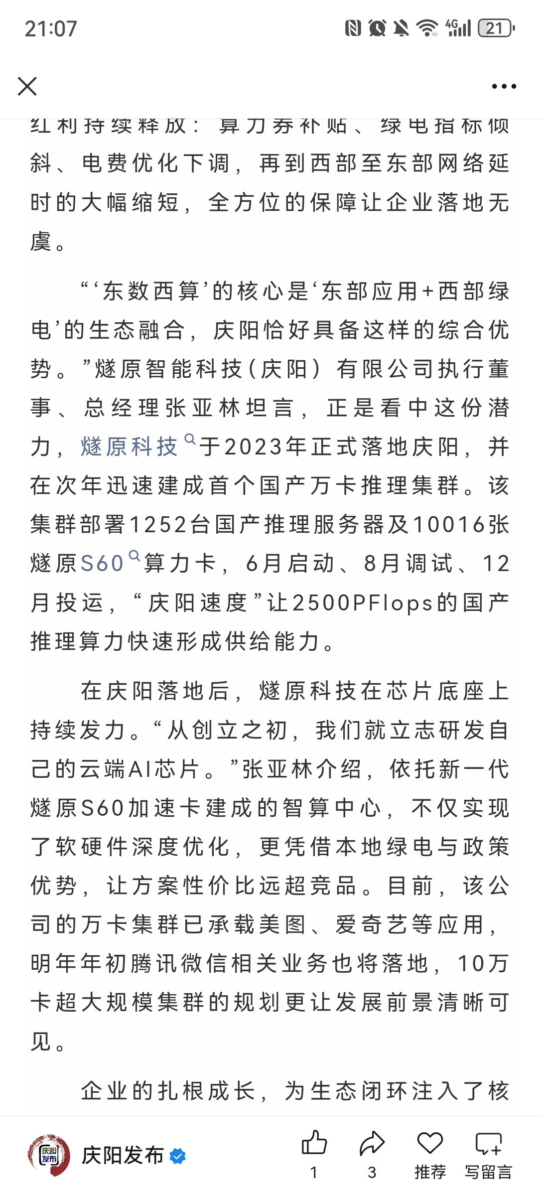 最近庆阳一直在发算力的消息,如火如荼的景象,你的股价却一幅烂象。弘勾啊,长点心吧