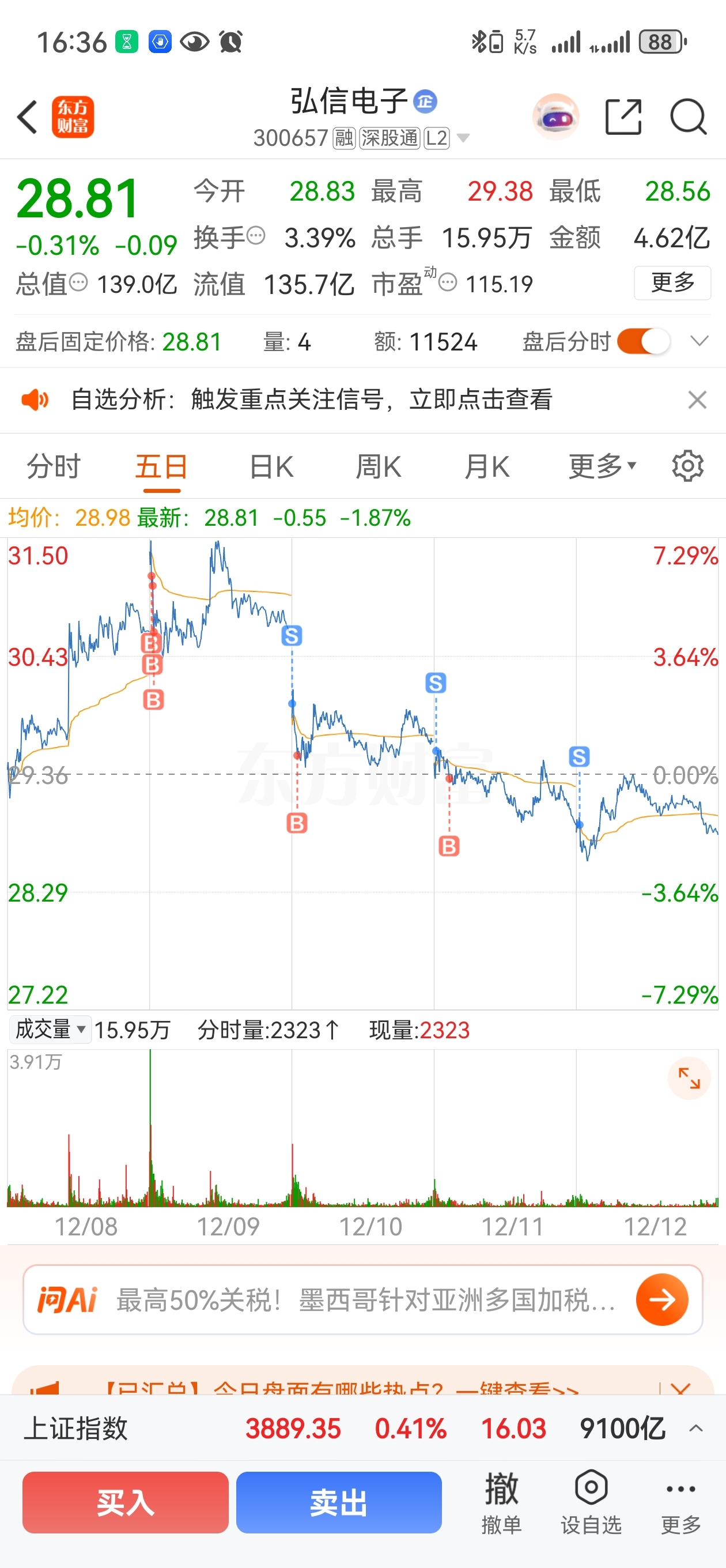$弘信电子(SZ300657)$ 真踏马垃圾啊指望你反弹就走,踏马弹个棉花