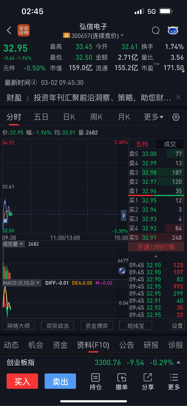 $弘信电子(SZ300657)$ 清仓了,卖在开盘最低点