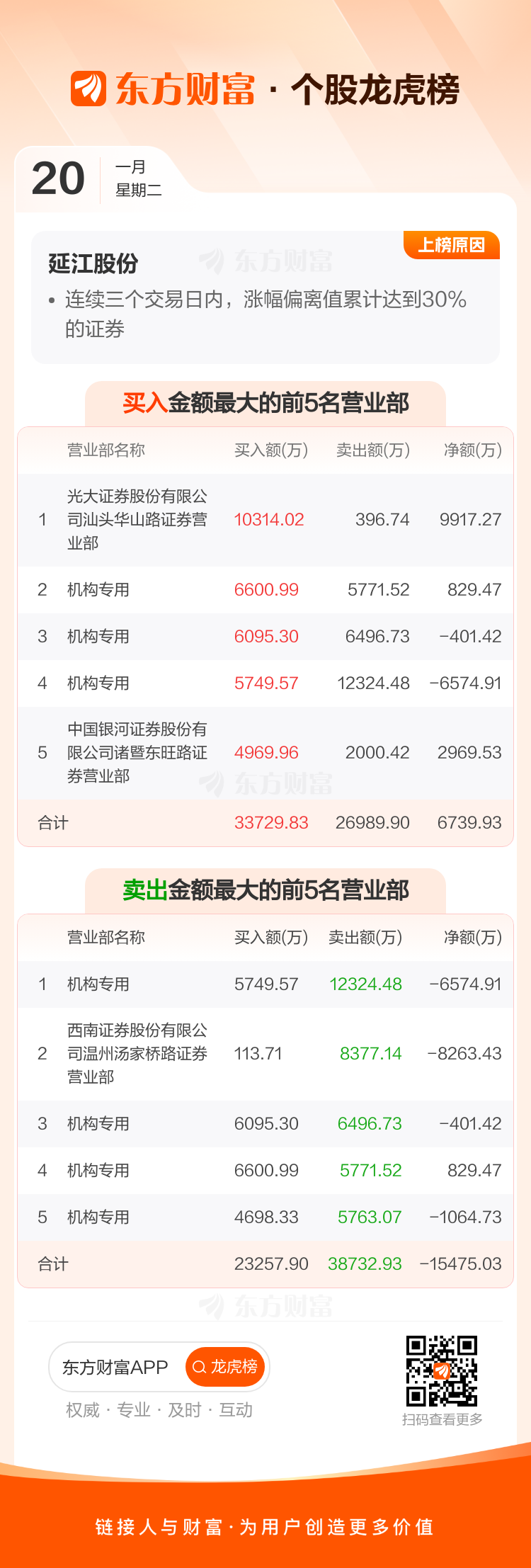 延江股份(300658)龙虎榜数据(01-20)