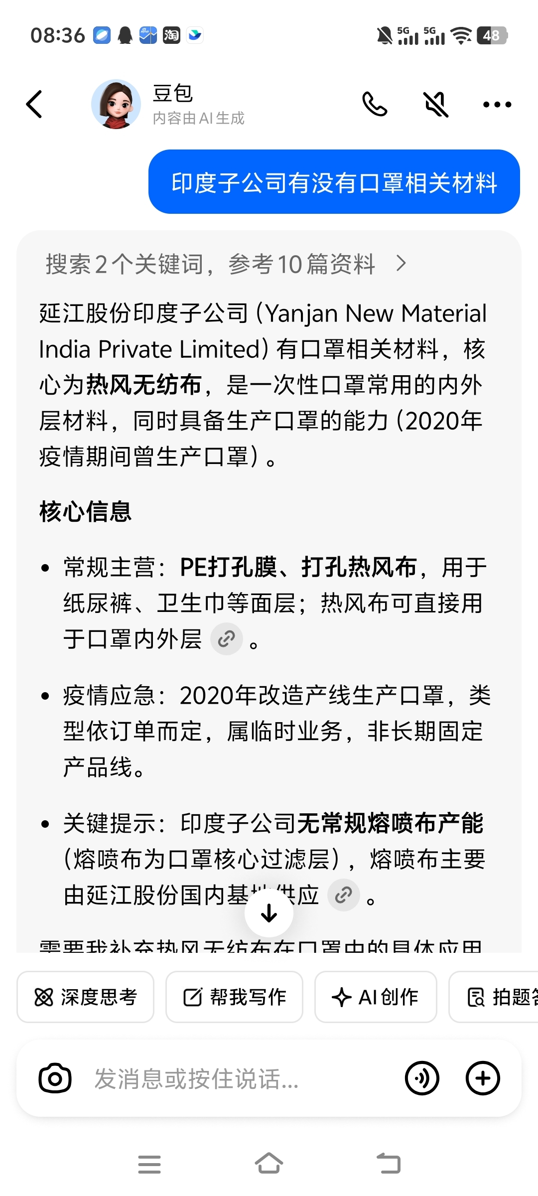 $延江股份(SZ300658)$ 延江股份在印度有子公司生产无纺布用于口罩外层