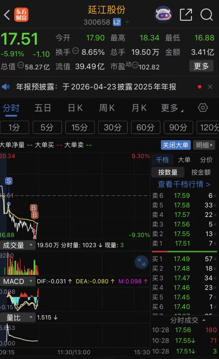 $延江股份(SZ300658)$ 也够妖,比较适合做T