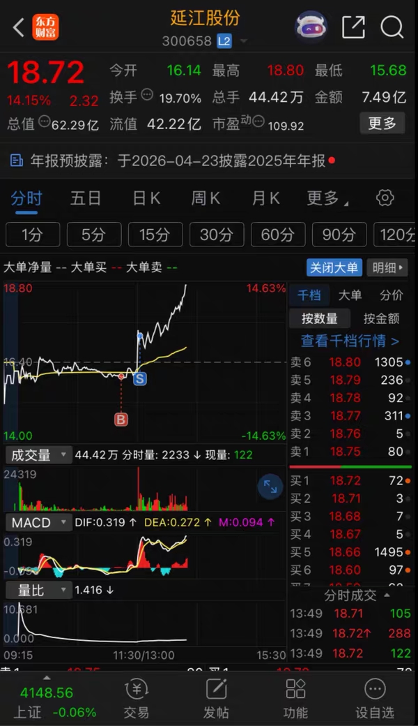 $延江股份(SZ300658)$ 太牛了