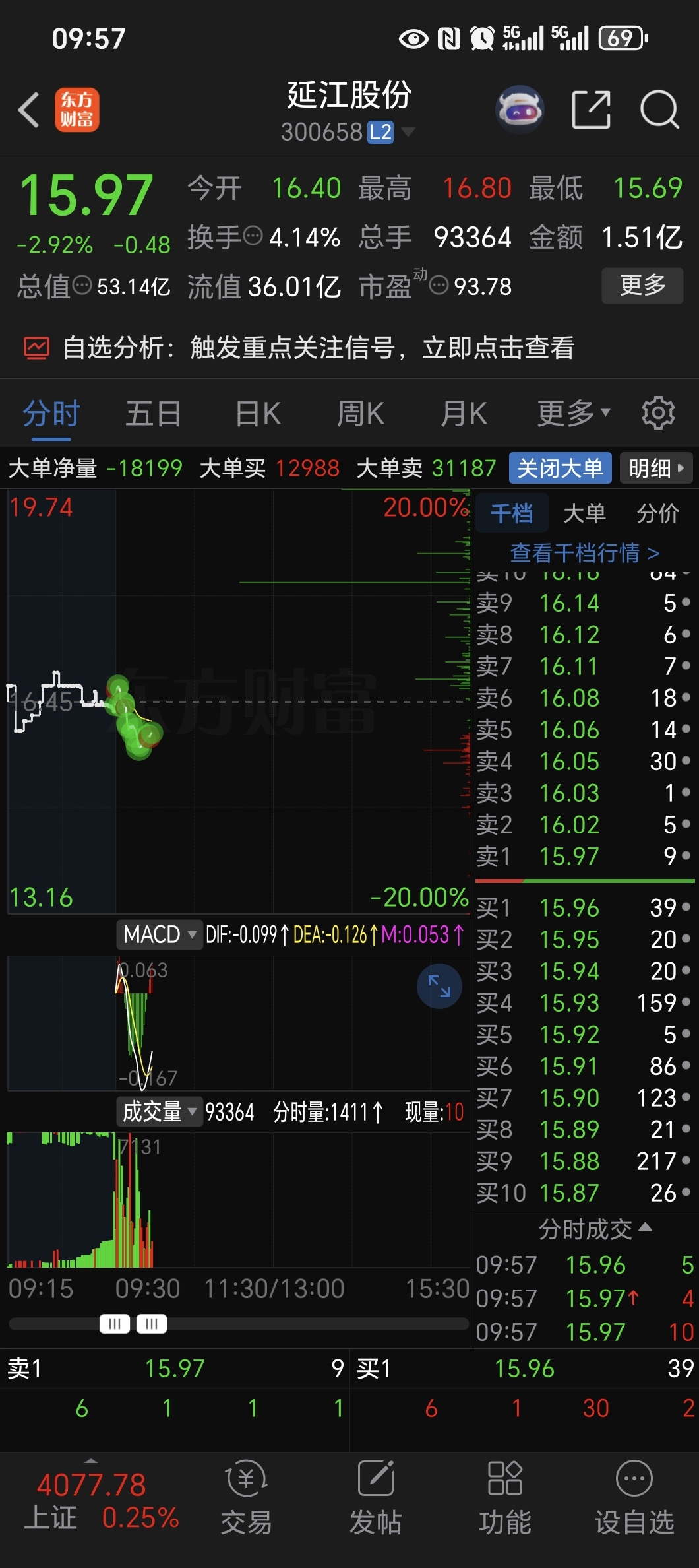$延江股份(SZ300658)$ 大单砸的太猛了,持续观望