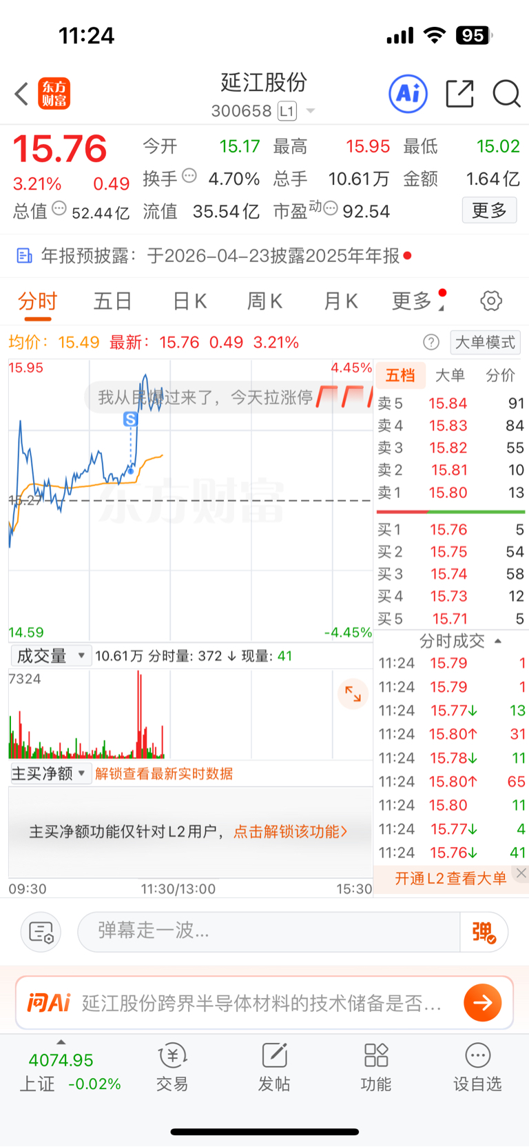 $延江股份(SZ300658)$ 卖了就涨,这种股就是喜欢恶心人,早上完全可以直接拉上去的,再也不碰了