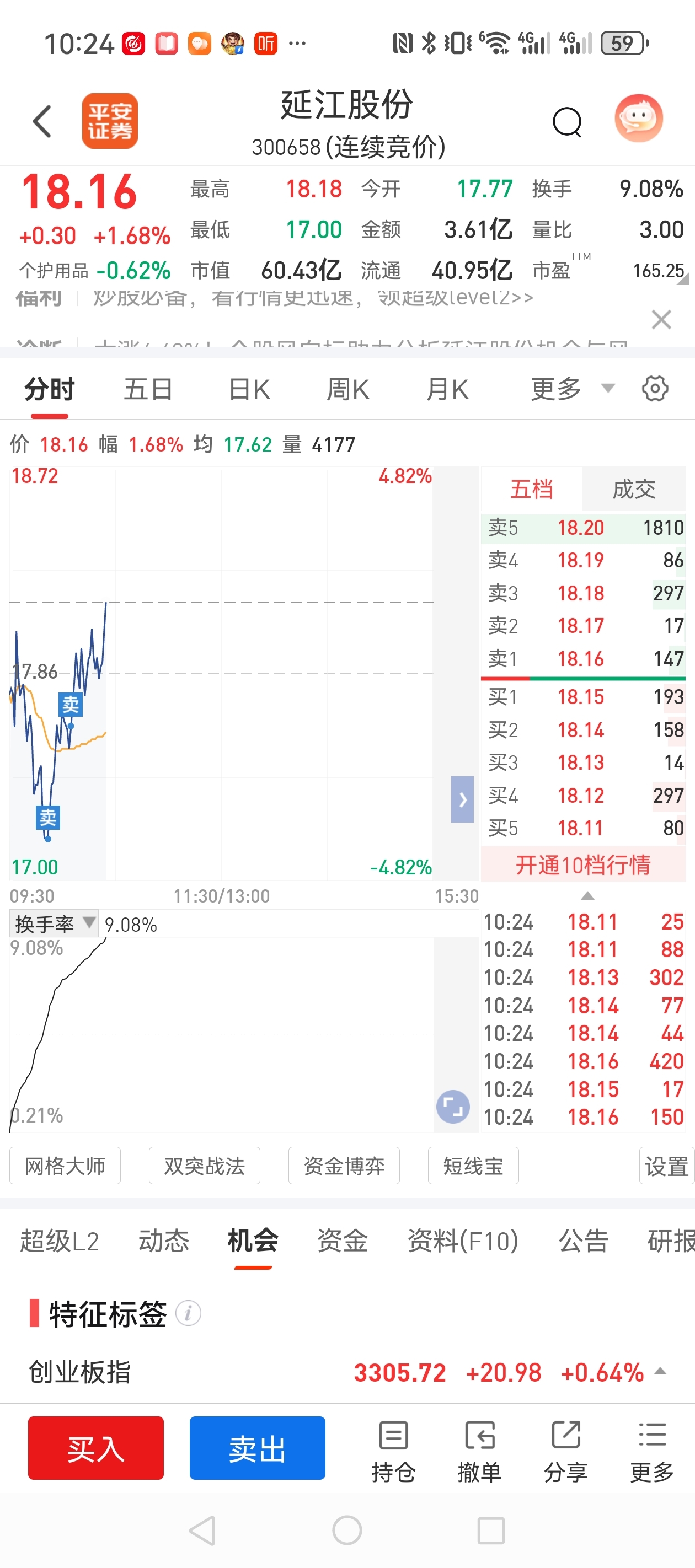$延江股份(SZ300658)$ 马拉个壁,我割肉了你就开始涨了