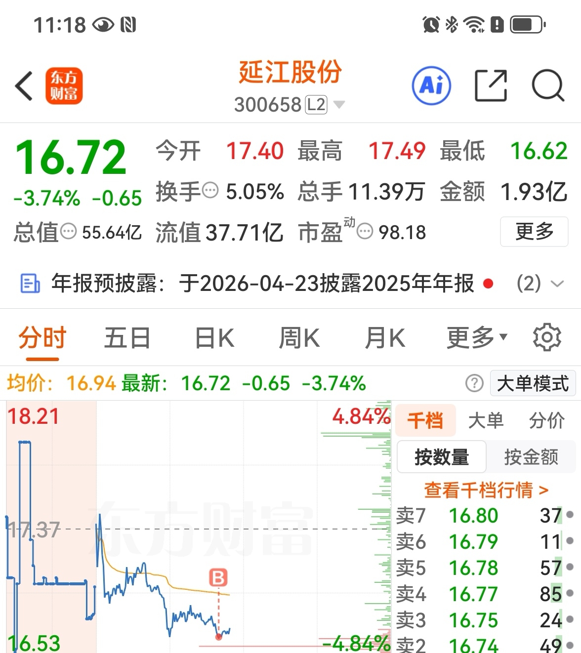 $延江股份(SZ300658)$ 上午的底被我焊住了!个人娱乐,非喜勿喷!