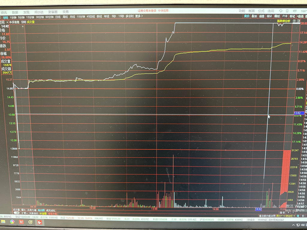 $中孚信息(SZ300659)$ 对倒拉升涨停就不说了,涨停板上第一笔大单出货是1495万