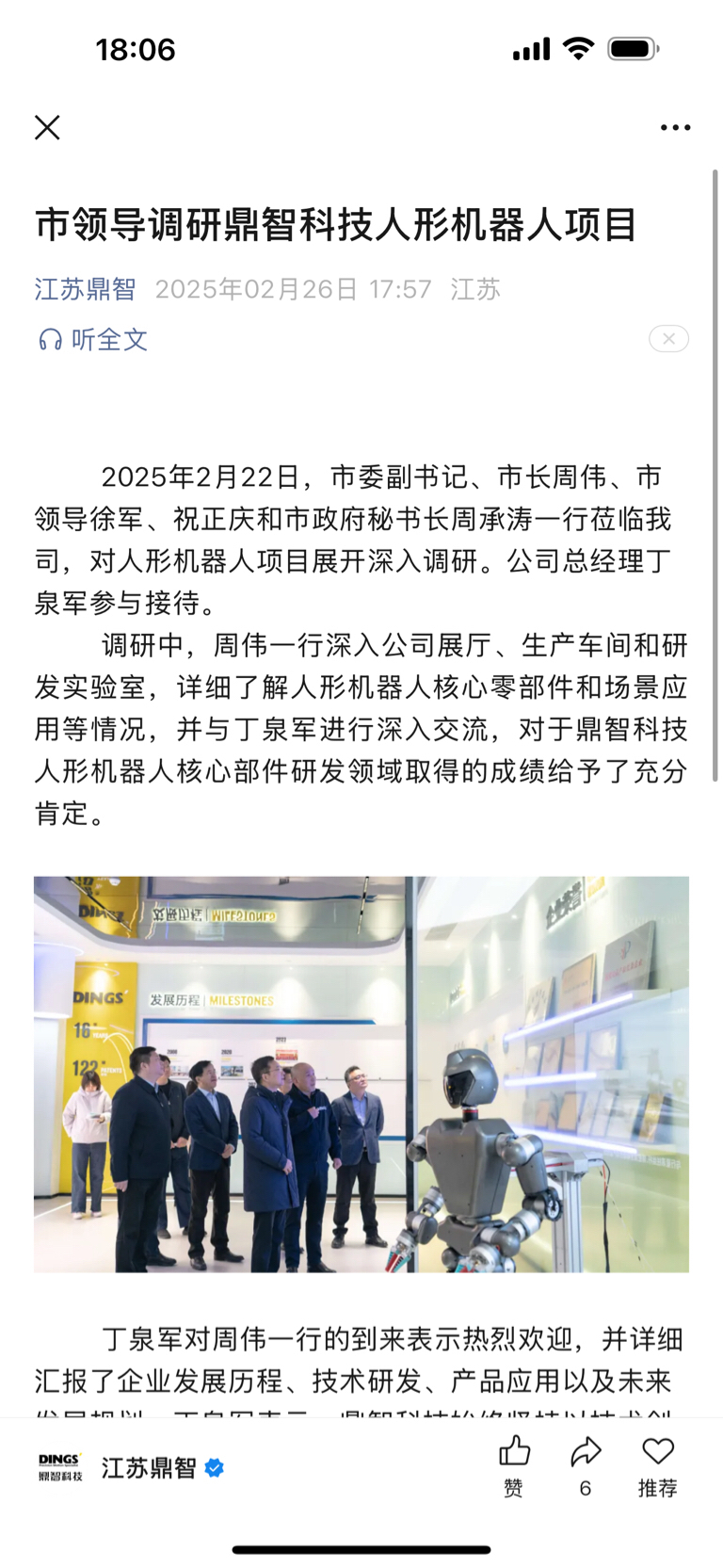 $江苏雷利(SZ300660)$ 市委领导都来看你来了,多么纯正的人形机器人概念,明天要暴力反弹了,直接拉涨停!