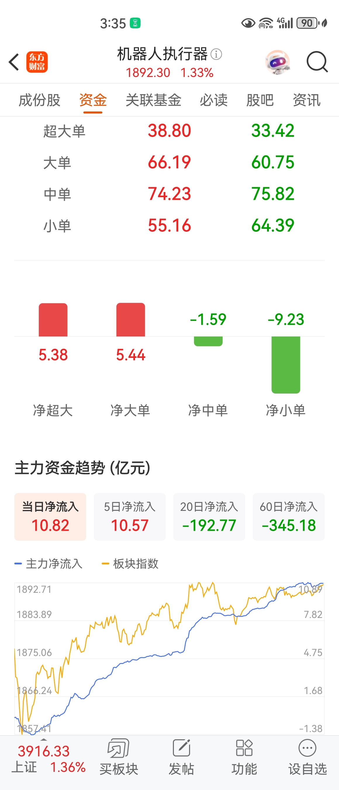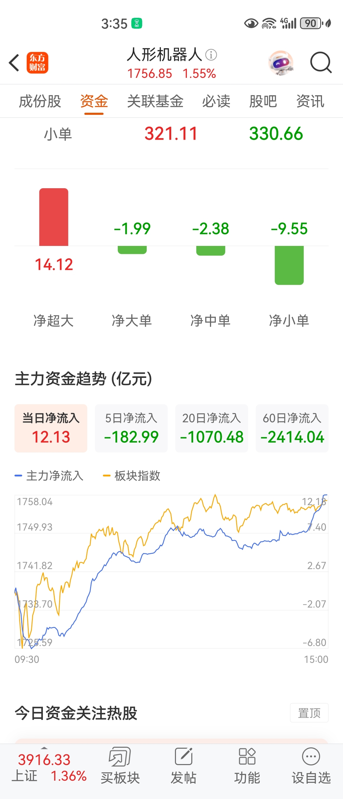 观察:今天人形机器人及执行器板块资金呈持续流入状态,从早盘到收盘,资金走势曲线呈