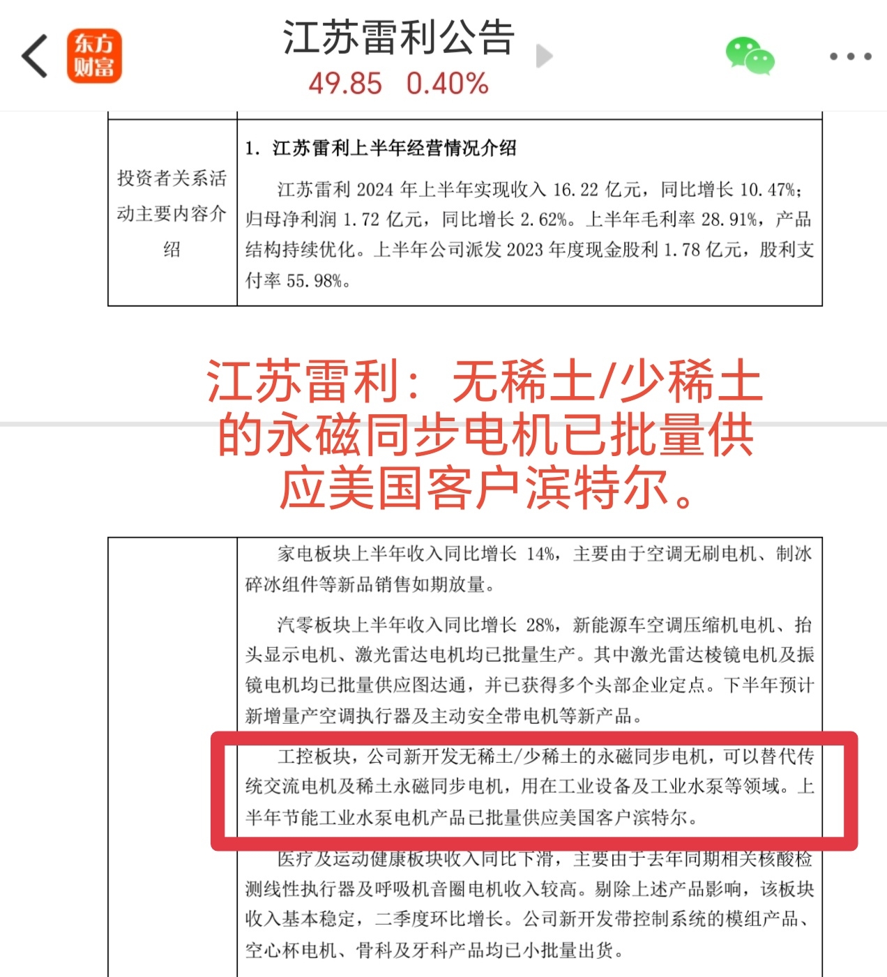 江苏雷利:工控板块新开发无稀土/少稀土的永磁同步电机已批量供应美国客户滨特尔。$江苏雷利(SZ300660)$ $迪贝电气(SH603320)$ $英搏尔(SZ300681)$