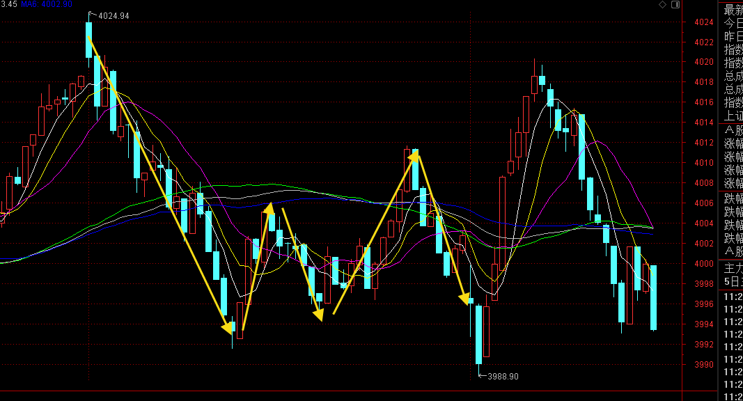 早盘诱多那一下子,你激动了吗?非常快速的拉升,然后又快速的回落。其实这就是这个阶段的煮力意图,每天都给市场制造强力冲击的假象。但看过老秦盘前预判的人,应该心里有底。昨天遇前高回落后,就要先向下寻支撑,而不是什么快速反包。我们从5分钟大盘也能看出,其实昨天就开始不断的走A字图形,A字图形的内在逻辑,就是多空力量大体均等,谁都无法压过谁,所以拉了一波后,马上尖顶下来,下来后再V反上去,就像拳击手一样,你给我一拳,我给你一拳。