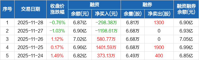 江苏雷利:融资净偿还298.38万元,融资余额6.87亿元(11-28)