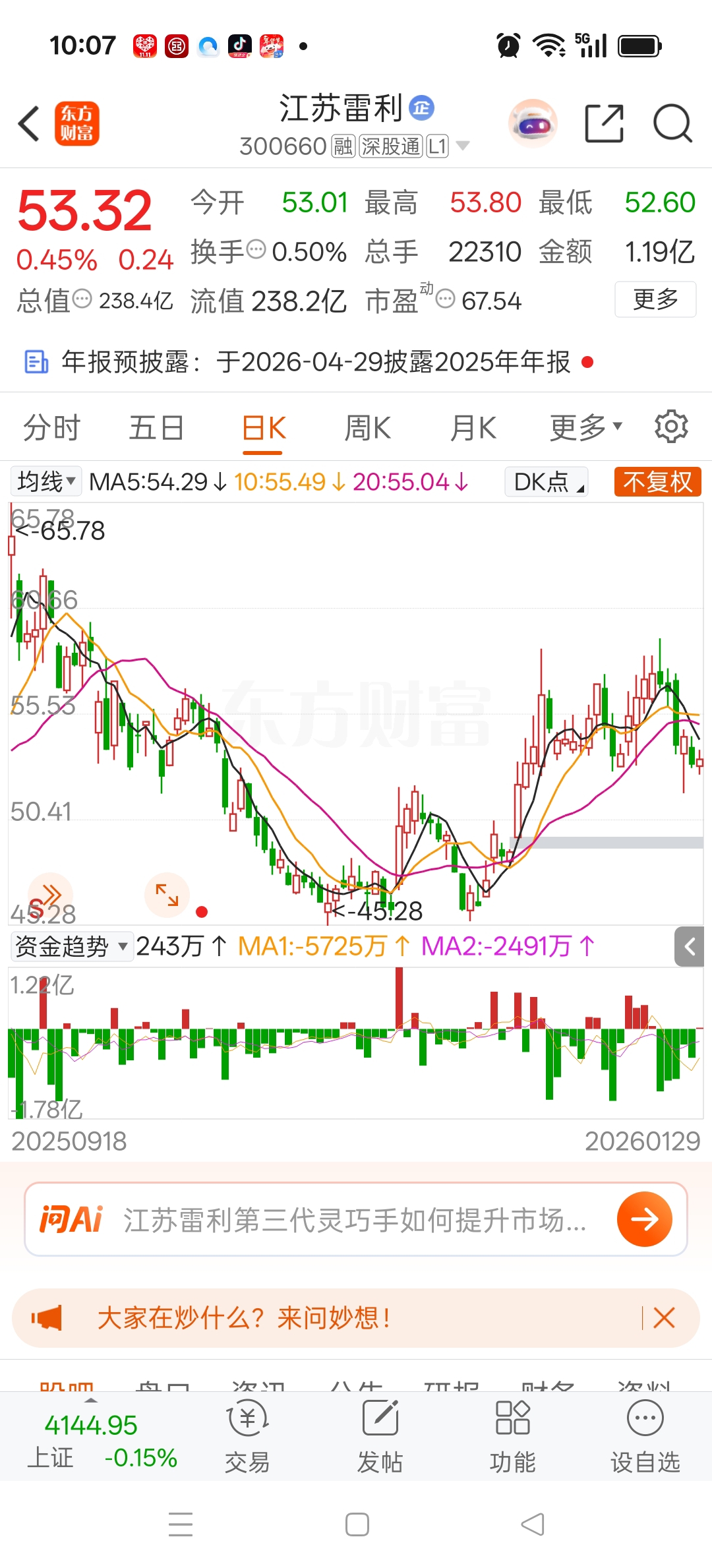 $江苏雷利(SZ300660)$ 做个人吧入点资金吧