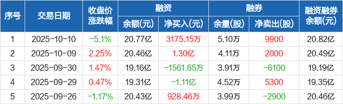 圣邦股份:融资净买入3175.15万元,融资余额20.77亿元(10-10)