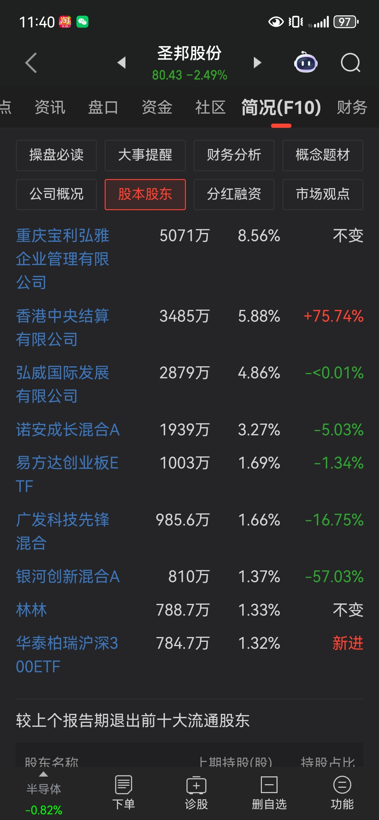$圣邦股份(SZ300661)$ 机构全在减,涨毛