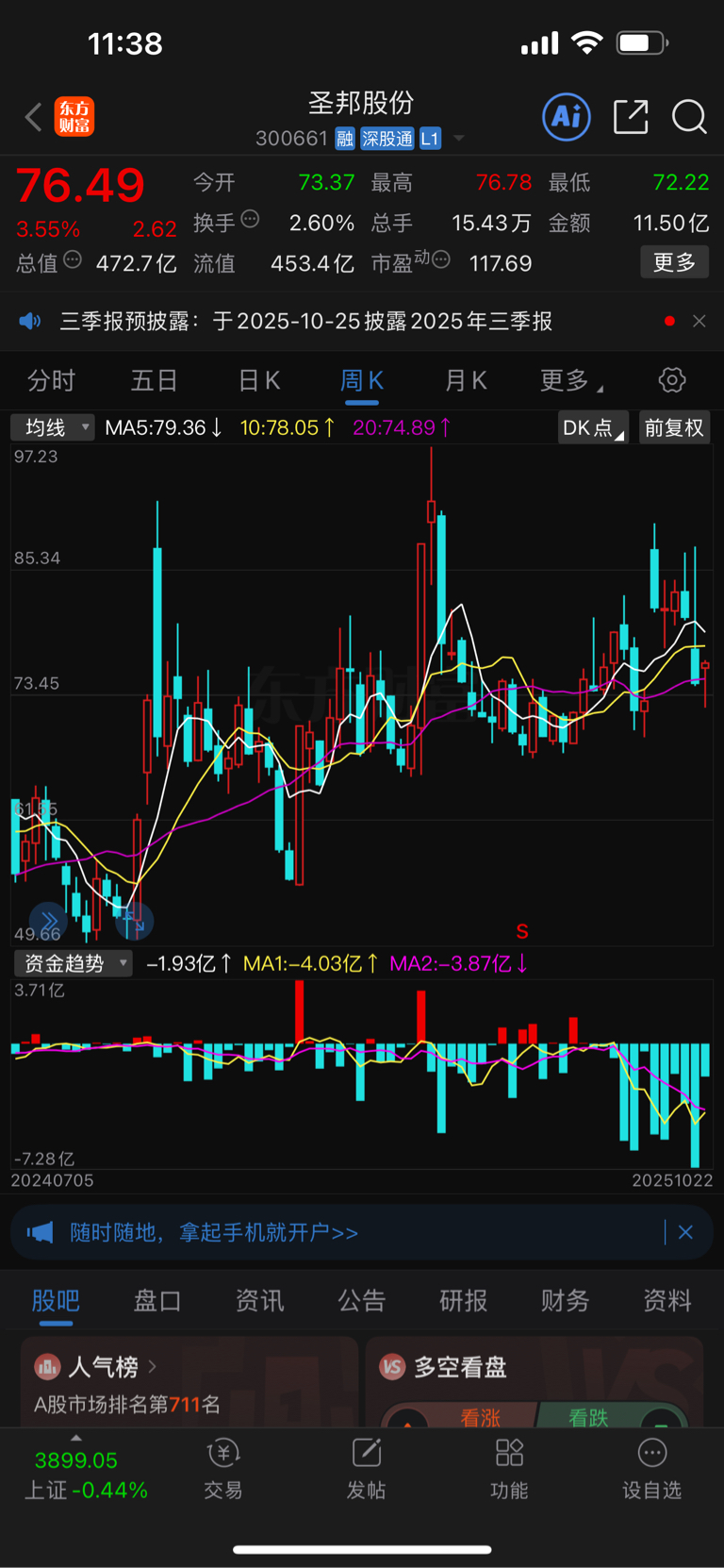 $圣邦股份(SZ300661)$ 周线看着一直在出货