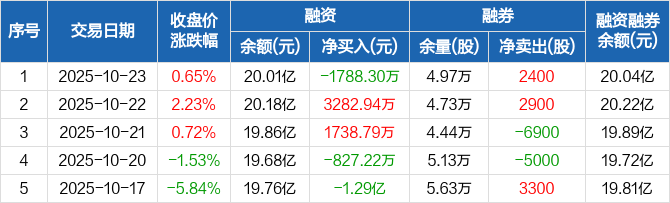 圣邦股份:融资净偿还1788.3万元,融资余额20.01亿元(10-23)