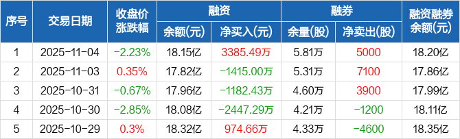 圣邦股份:融资净买入3385.49万元,融资余额18.15亿元(11-04)