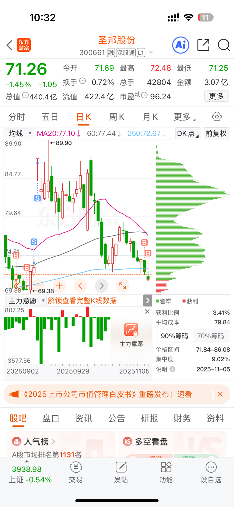 $圣邦股份(SZ300661)$ 我回来了,从现在开始,越跌越买