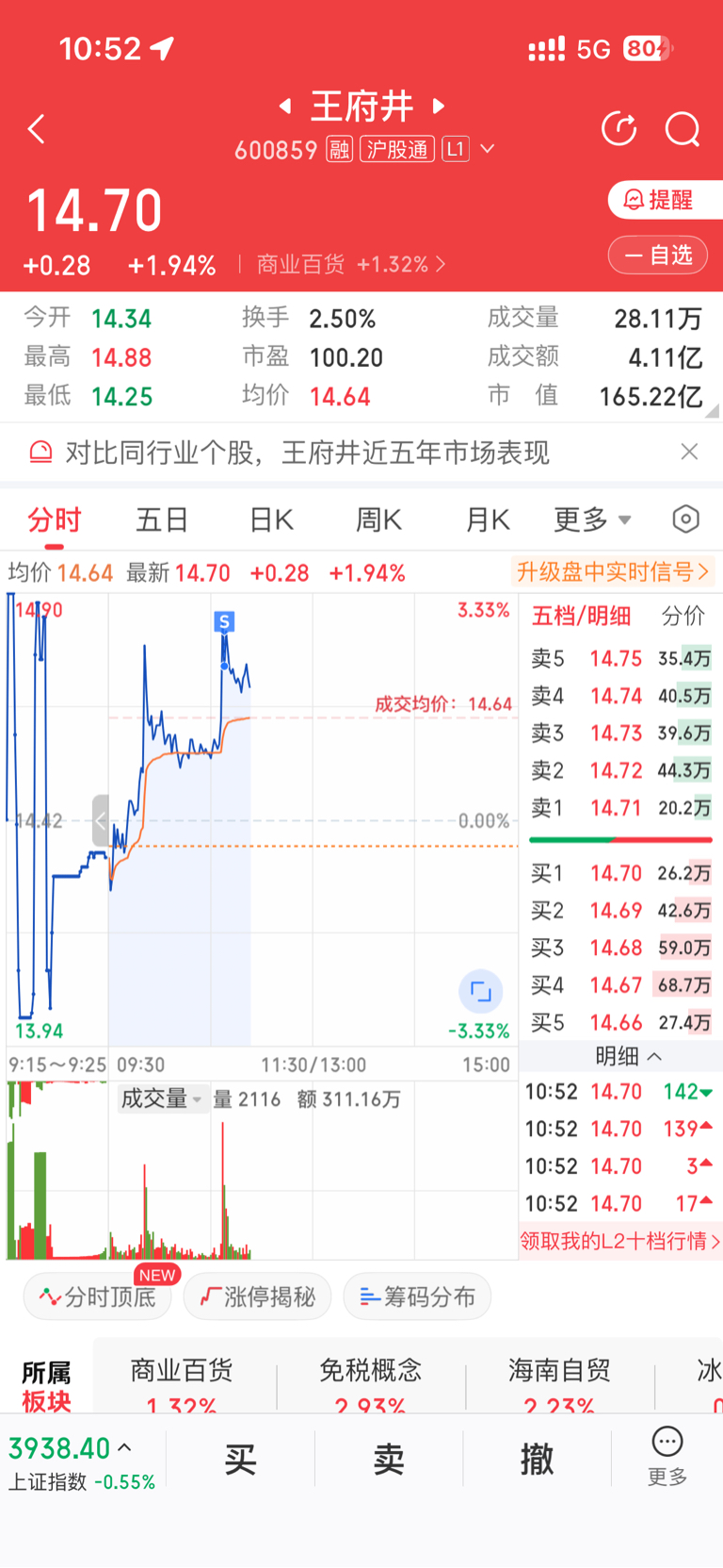 $圣邦股份(SZ300661)$ 昨天200万都买王府井该多好