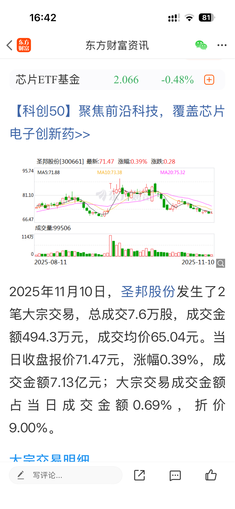 $圣邦股份(SZ300661)$ 林林65元卖了