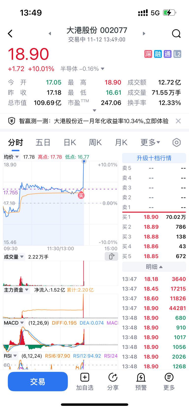 $圣邦股份(SZ300661)$ 割了转为大港,