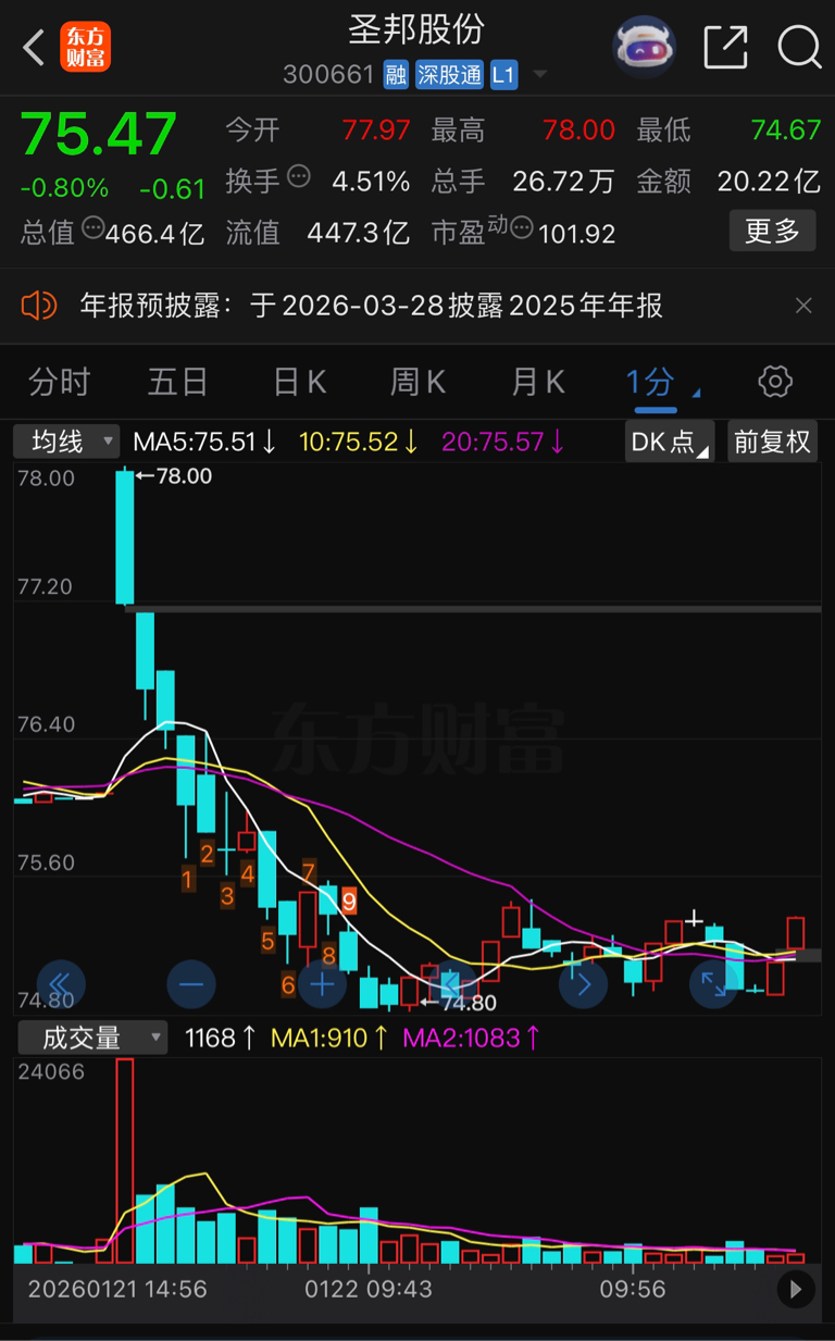 $圣邦股份(SZ300661)$ 可怜,早上开盘直接砸,几分钟就绿色了,而且不给你做T的机会