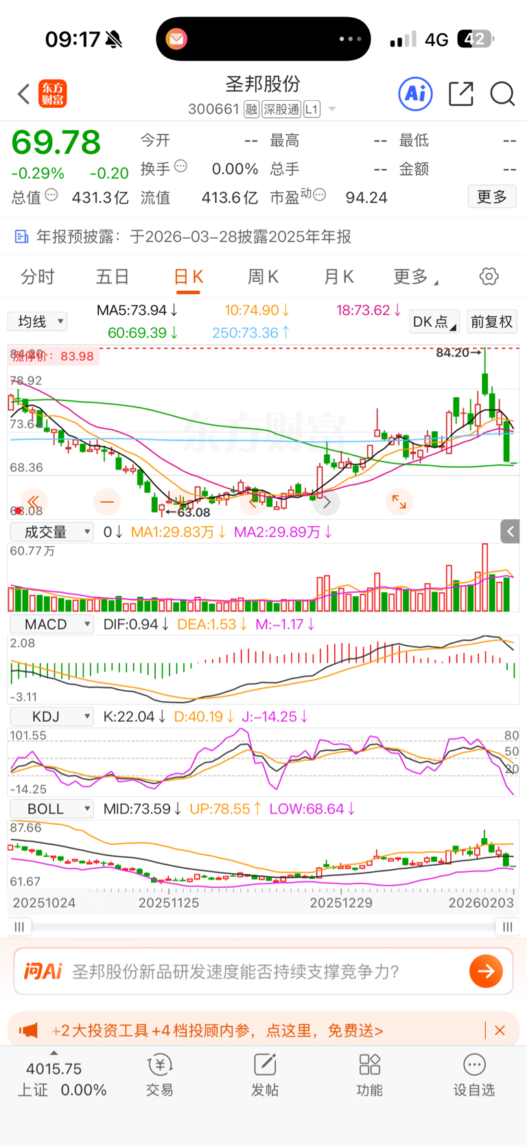 $圣邦股份(SZ300661)$ 4天从高位跌20%,刺激