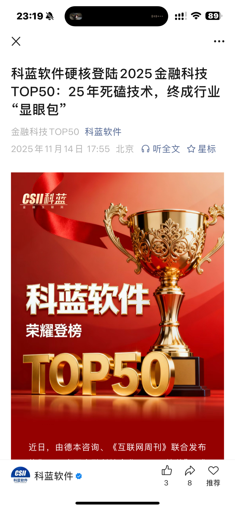 $科蓝软件(SZ300663)$ 这公司是好玩