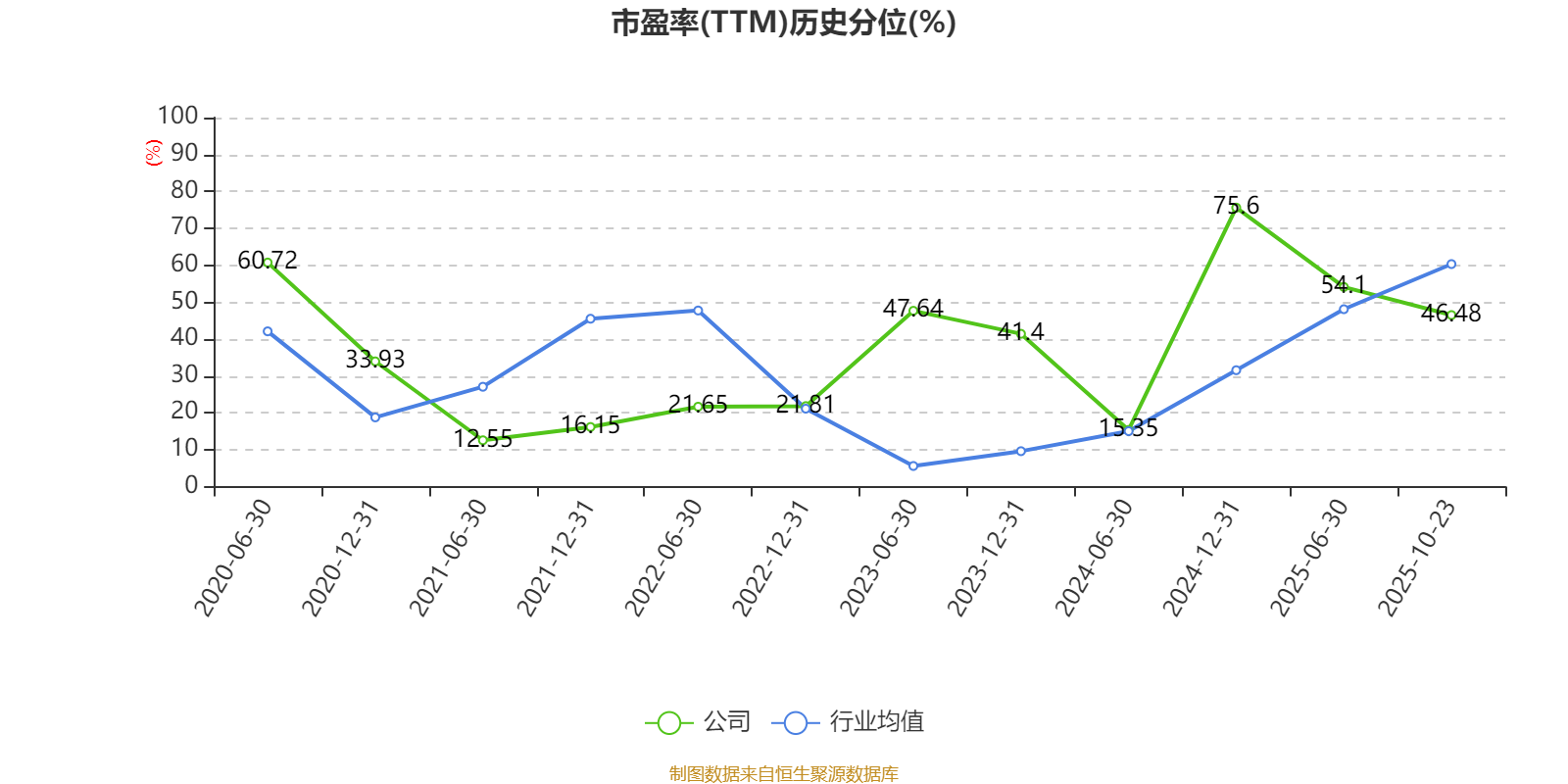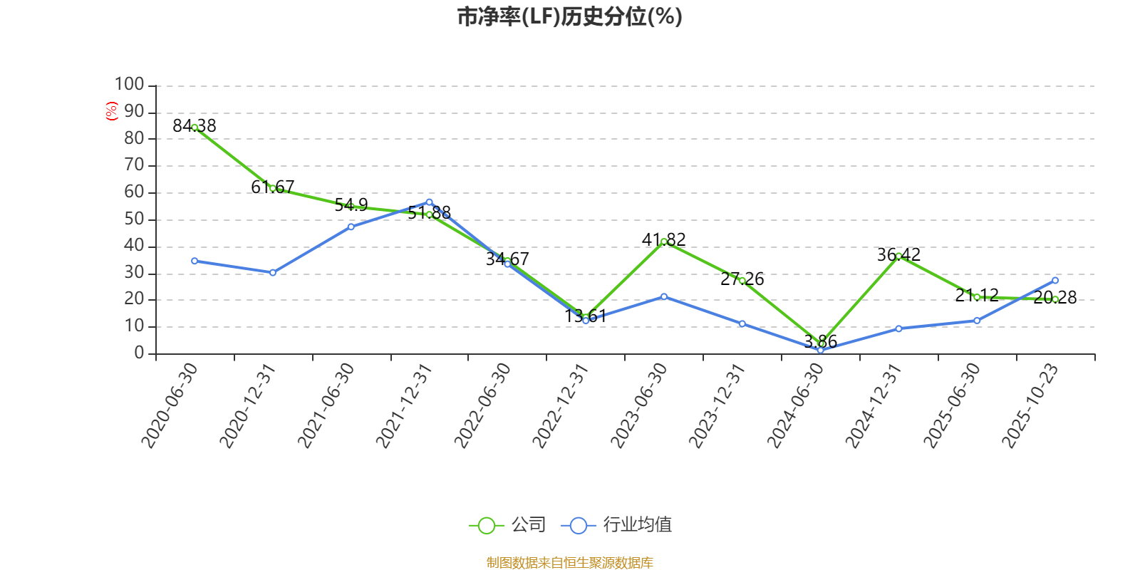 市盈率、市净率为负时,不显示当期分位数,会导致折线图中断。
