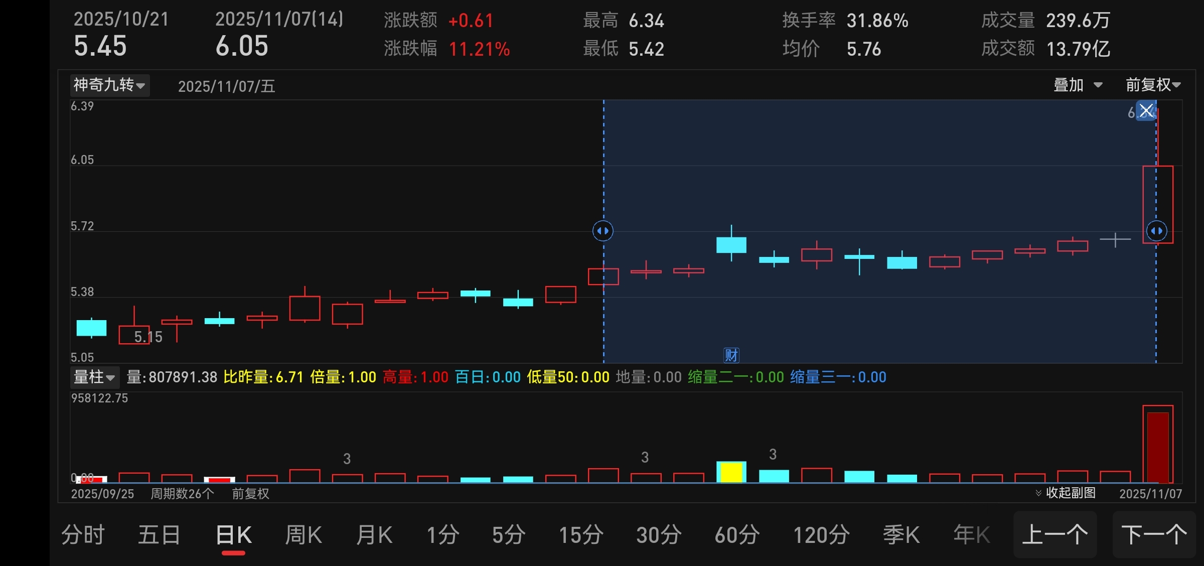 开收六大毛。近七倍量。本来以为还要横一个月。