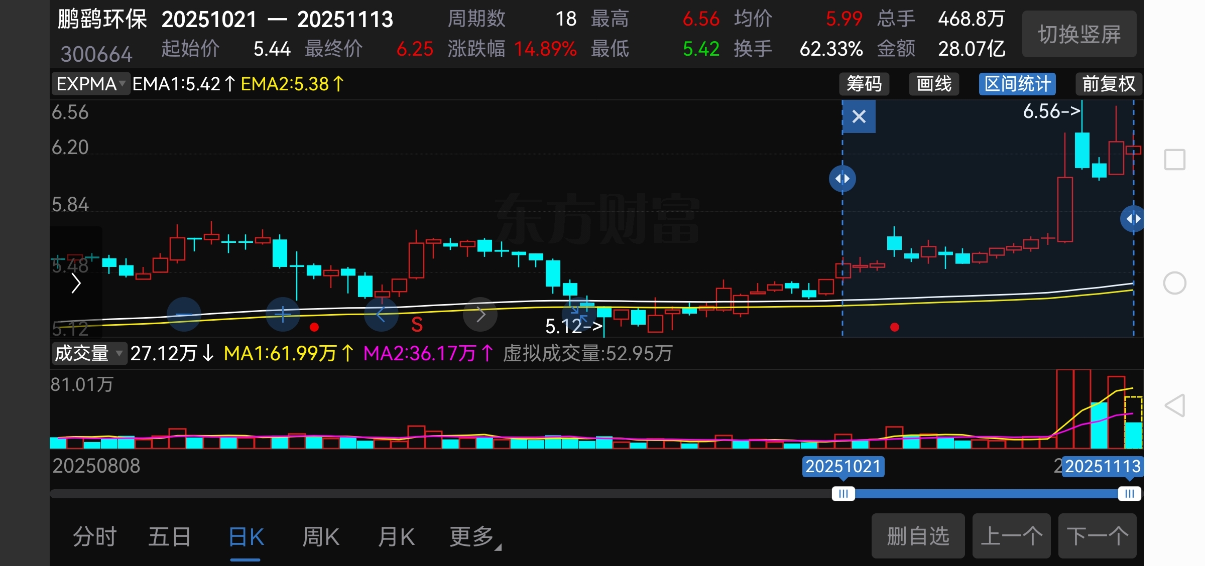 $鹏鹞环保(SZ300664)$ 计数18,上窜下跳,百分百换手还差一星期。