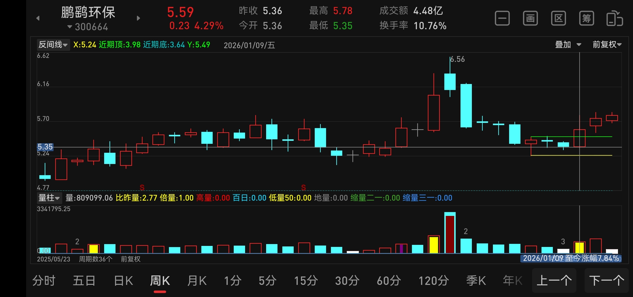 强势突破。订单流订单块。最小阻力5.78。