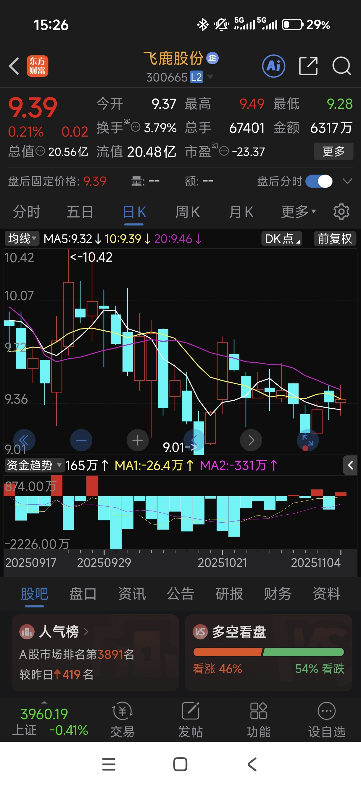 $飞鹿股份(SZ300665)$ 这么多天,资金开始有流入了
