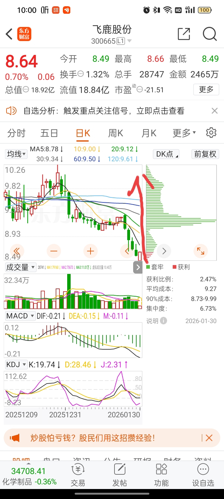 $飞鹿股份(SZ300665)$ 学学昨天的白酒一阳穿多线