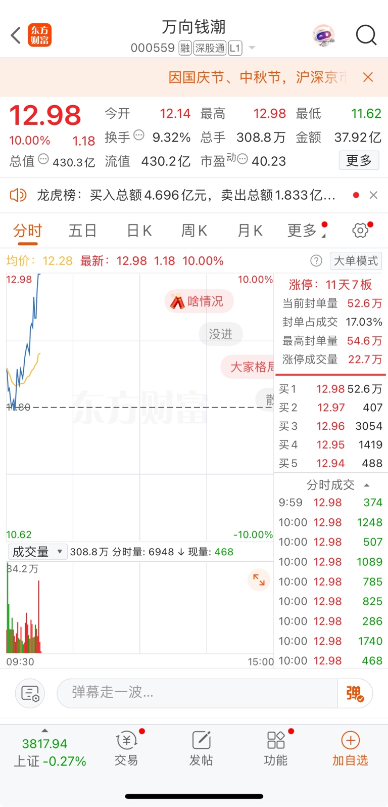 $万向钱潮(SZ000559)$拉板,非常不错,票给你们了,有多少人跟上,我就想看看,,,