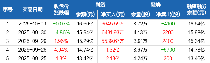 江丰电子:融资余额16.6亿元,创历史新高(10-09)