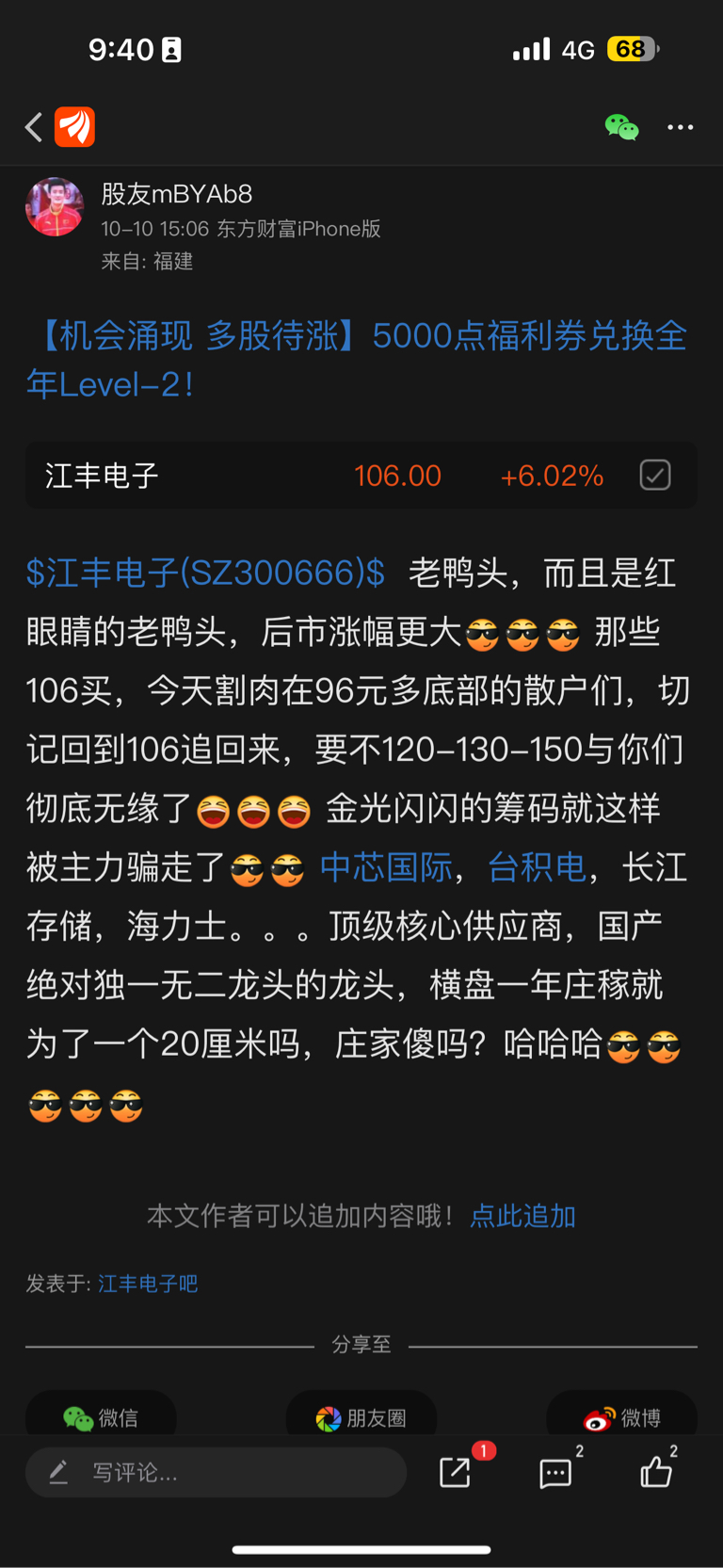 $江丰电子(SZ300666)$ 上周五盘中说了,洗盘洗盘!红眼睛的老鸭汤,今后会涨的更猛。上周五96割肉的朋友们,你们今天是不是106追回来了? 没有追? 那么过120记得追负责130,150与你们无关