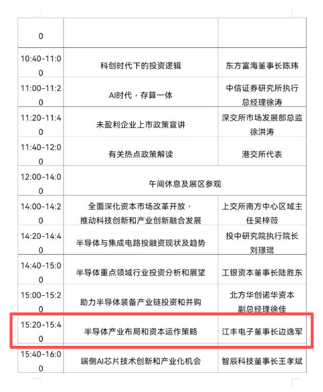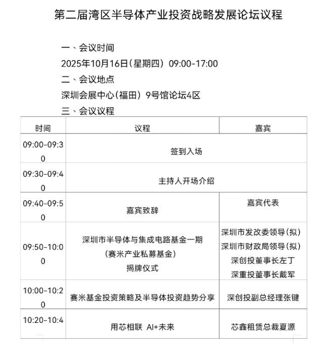 湾区论坛会议议程:江丰电子董事长《半导体产业布局和资本运作策略》