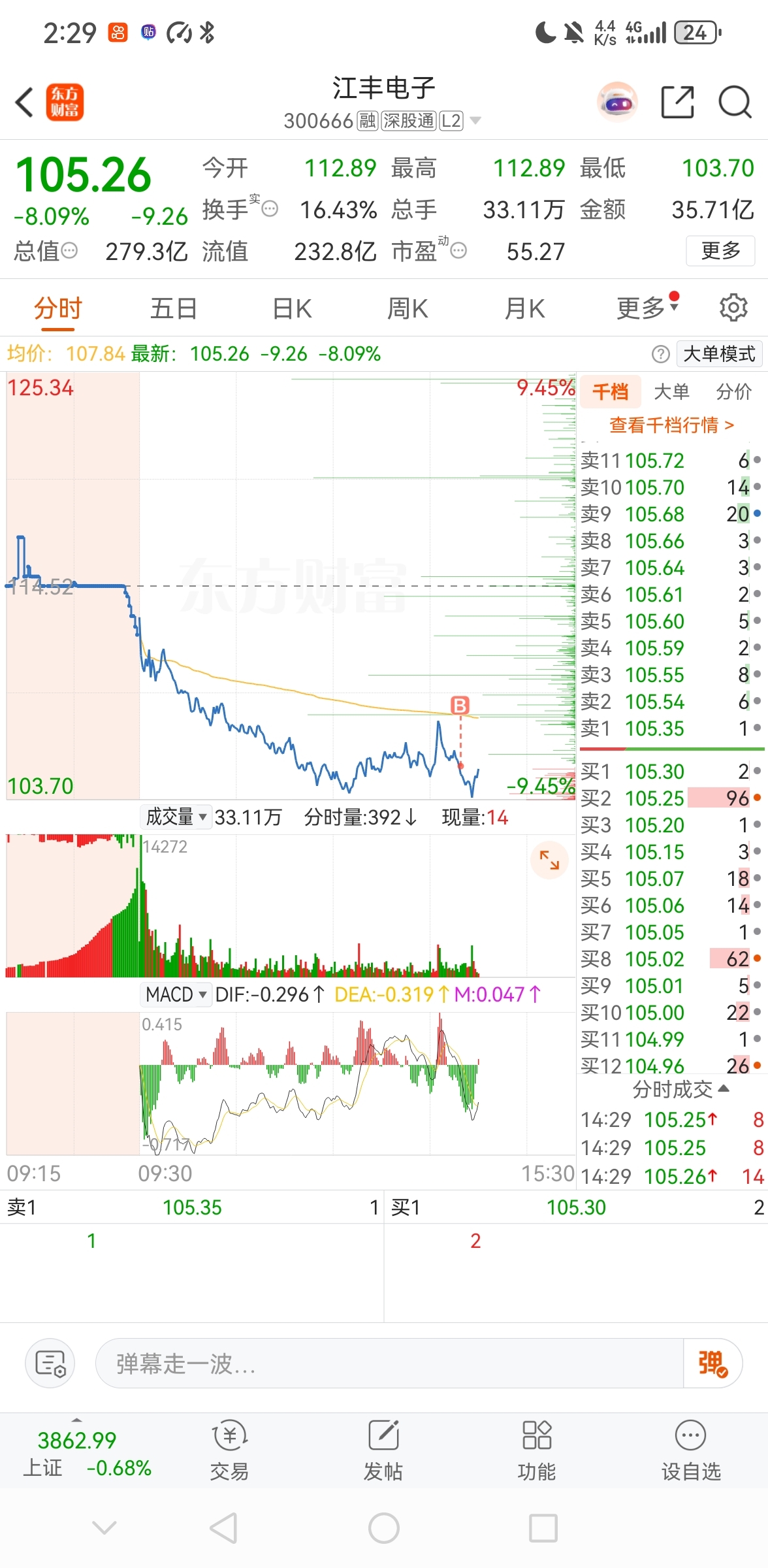 $江丰电子(SZ300666)$ 尾盘弄了这个,明天主力又要拉了,今天割韭菜割的好狠