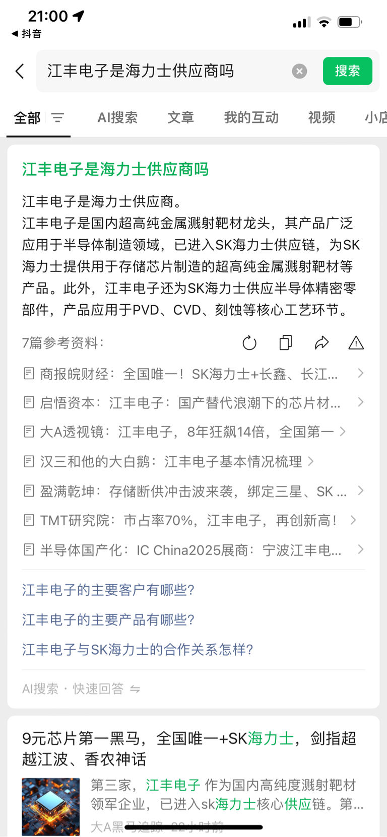 $江丰电子(SZ300666)$ 海力士独家专属!