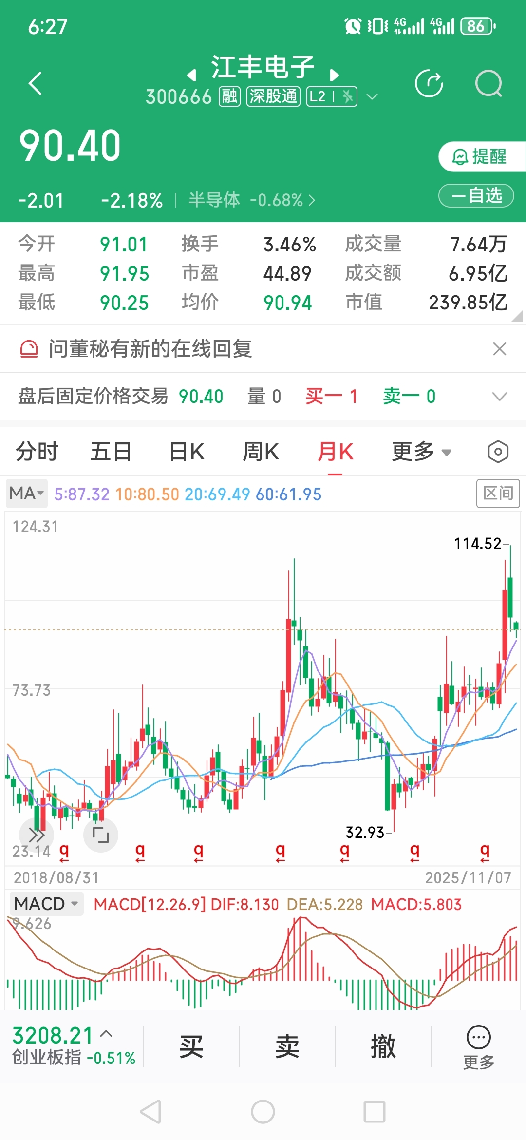 $江丰电子(SZ300666)$ 会不会探底32附近?那就要5年才能翻身了