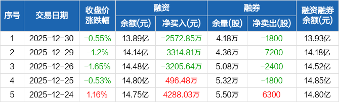 江丰电子:连续3日融资净偿还累计9093.3万元(12-30)